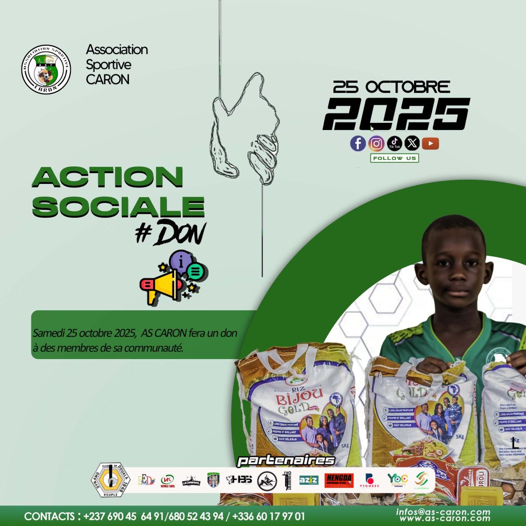 đź’¬ « L’AS CARON n’est pas seulement un club de football, c’est une famille. Chaque mois d’action sociale est un rappel que nos valeurs vont bien au-delĂ du sport : le partage, la solidaritĂ© et la reconnaissance », dĂ©clare GĂ©orgie ETOUNDI Commissaire aux comptes de l’AS CARON et conseillère spĂ©ciale du prĂ©sident.
